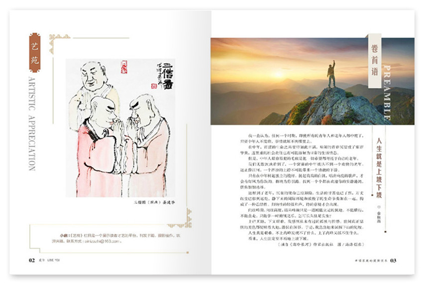 雜志堅持捕捉情感細節,傳播幸福哲學,通過挖掘平常生活中不為關注的情感細節,引導讀者感悟生活、感受美好。文字精煉,快樂耐讀。被譽為提升幸福指數的精神寶典,饋贈師長和親友的高尚禮物。