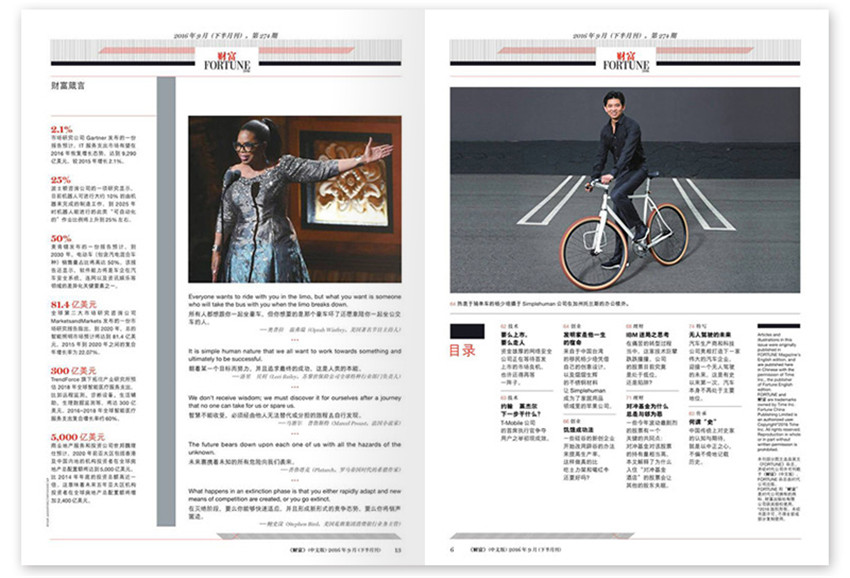 500強排行榜已成為世界上具影響的企業排名之一,而《財富》全球論壇則被視為世界經濟界巨頭“腦力激蕩”、“激發新思維”的良機,在中國宣布對外開放政策的1979年之前, 中詢有限公司就已成為為中國市場出版工商雜志的專業出版公司,全球企業能從這家中國共享單車公司學會什么?——好的創意絕不會在任何邊界停下,那些希望借這些好創意獲利的人也是如此。