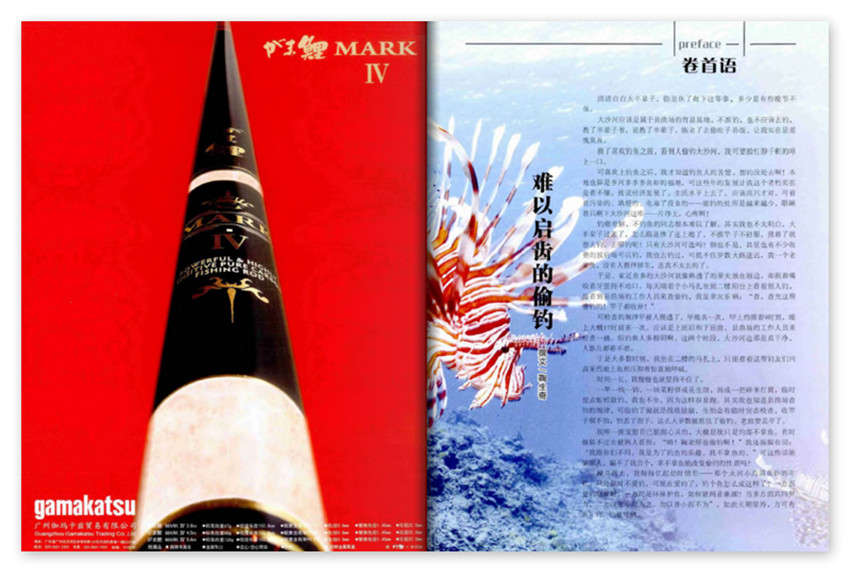 文化為紐帶,并重釣具使用,滿足釣友們對釣魚和釣具知識的需求,卷首語為釣魚作史,為釣魚張目,為釣魚的發(fā)揚傳承而奮斗,釣技交流針對祖國傳統(tǒng)釣技進行探討。