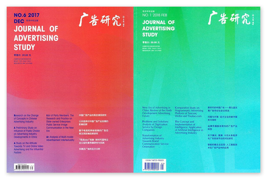 填補了國內廣告業學術性定位核心期刊空白,是華文廣告圈第一本廣告學術研究期刊,讀者推薦:藝術家、潮流人群、廣告設計師、白領一族、時尚藝人;主要欄目:社淪、以研究帶動教學、營銷傳播論壇、新媒體專題、研究生天地、國內動態、國際動態等。