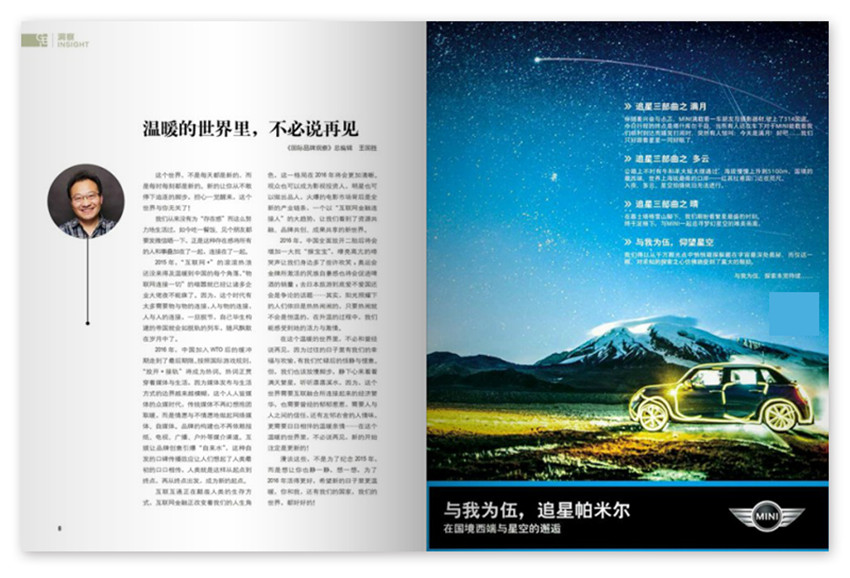 《國際品牌觀察》雜志是一本專業(yè)的廣告雜志,是一本購買世界雜志美國周刊中國版權(quán)的雜志,一本環(huán)球市場、專業(yè)務(wù)實、資訊及時的專業(yè)化雜志,中國對外貿(mào)易經(jīng)濟合作部主管、中國對外經(jīng)濟貿(mào)易廣告協(xié)會主辦。