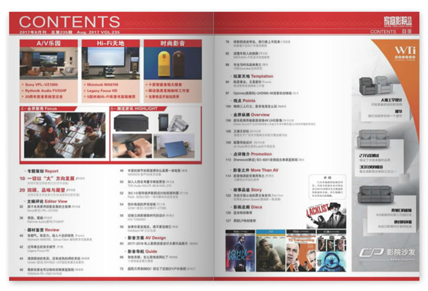 《家庭影院技術》雜志,(月刊),是面向全國發行的數碼通訊類期刊,雜志擁有獨到的思維與敏銳的眼光,使得雜志成為眾多國際大品牌客戶重視的核心媒體之一。《家庭影院技術》雜志內容詳實、觀點新穎、文章可讀性強,有眾多影音器材組織測評與鑒賞的經驗,會抱著對玩家負責的態度對產品進行深度剖析,不停的關注更新的科技與影音潮流。