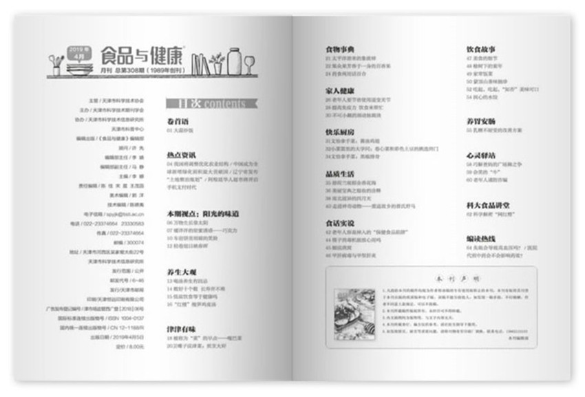 《食品與健康》雜志,(月刊),是面向全國(guó)發(fā)行的廚房美食類期刊,雜志擁有獨(dú)到的思維與敏銳的眼光,使得雜志成為眾多國(guó)際大品牌客戶重視的核心媒體之一。本著全面、高端、深入的原則,以構(gòu)筑食品安全領(lǐng)域技術(shù)、知識(shí)、信息的傳播、交流平臺(tái)為追求,以成為食品生產(chǎn)加工、流通銷售企業(yè)的安全顧問為己任,以成為食品安全領(lǐng)域值得信賴的內(nèi)容與服務(wù)提供者為目標(biāo),力圖為食品行業(yè)企業(yè)提供全方位的食品安全技術(shù)解決方案。