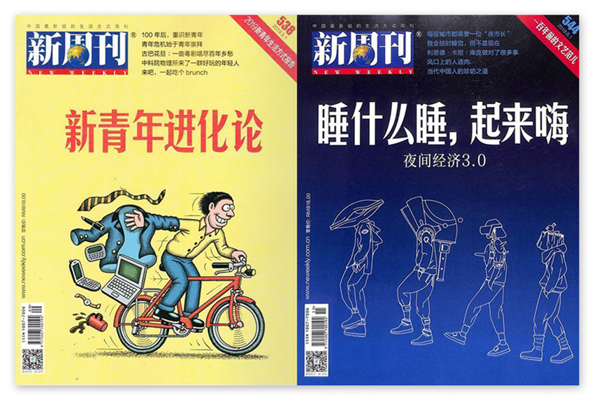 《新周刊》雜志,(半月刊),是面向全國發行的時政新聞類期刊,雜志擁有獨到的思維與敏銳的眼光,使得雜志成為眾多國際大品牌客戶重視的核心媒體之一。致力于挖掘人物背影后的銳力價值。報道類別包括:重量級人物、社會名流和富有個性魅力的都市臉譜。本欄目貼近人物心路歷程、濃縮精華、延伸背景、揭示影響,人物肖像拍攝獨具沖擊力。將設有“享受”、“F40”與“青春痘”等人物系列子欄目。