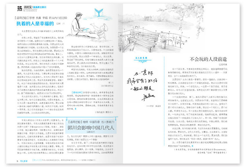 《意林·作文素材》雜志由意林資深編輯團隊在深入研究中高考、以及各學期期末考試作文題目的基礎上,聯合北大人大附中等教學一線名師,專門為中學生量身定做、具有實用性和思想性的作文讀本。半月刊,是面向全國發行的學習輔導類期刊,雜志擁有獨到的思維與敏銳的眼光,使得雜志成為眾多國際大品牌客戶重視的核心媒體之一。