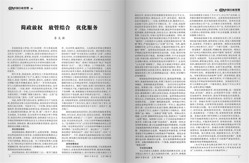 《中國行政管理》雜志是由國務(wù)院辦公廳主管,中國行政管理學(xué)會主辦,是新中國成立后創(chuàng)辦的第一本研究行政管理的專業(yè)刊物,是反映政府行政管理理論與實踐的北大圖書館收錄期刊,也是目前我國行政(公共)管理學(xué)科大型綜合性期刊,被北大圖書館收錄期刊要目總覽列為“政治學(xué)類”第一位、“管理學(xué)類”第一位。2012年入選國家社科基金學(xué)術(shù)期刊首批資助名單(批準(zhǔn)號12QKA095)。
