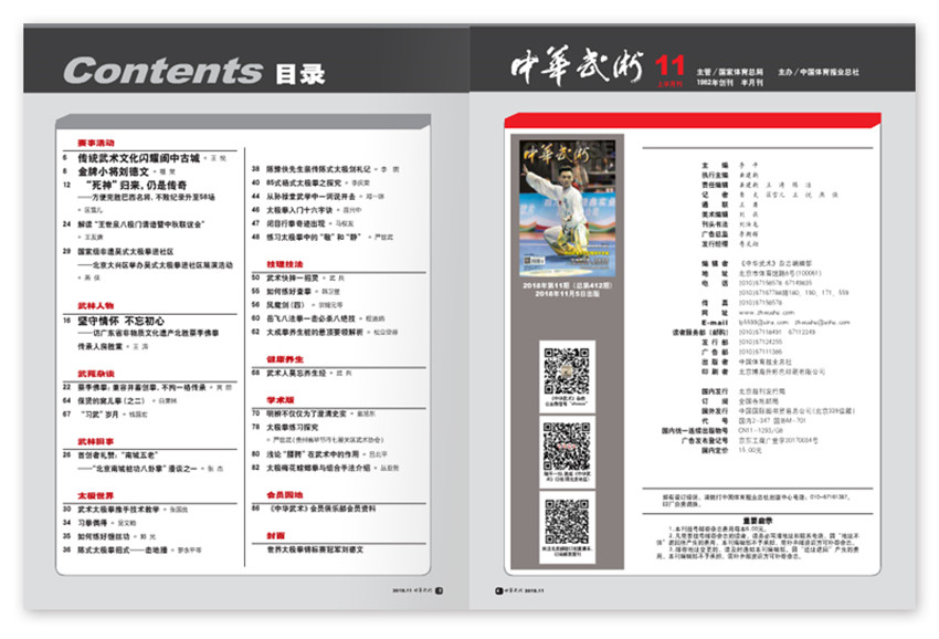 《中華武術》雜志,(月刊),是面向全國發行的體育運動類期刊,雜志擁有獨到的思維與敏銳的眼光,使得雜志成為眾多國際大品牌客戶重視的核心媒體之一。系統了解中國武術走向市場的艱難歷程。同時,該刊將配合賽事推出“有獎競猜”等一系列讀者參與的活動。